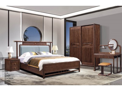 華軒新中式烏金木床357#、床頭柜362#、兩門(mén)推拉衣柜145#、梳妝臺(tái)161# |