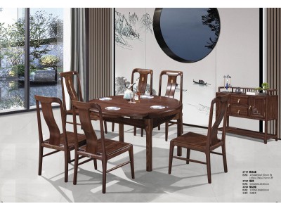 華軒新中式烏金木跳臺桌277#、餐椅378#、餐邊柜339#