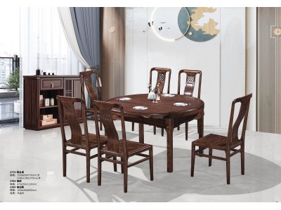 華軒新中式烏金木跳臺桌277#、餐椅379#、餐邊柜338#