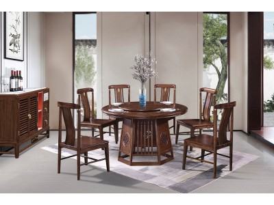 華軒新中式烏金木圓餐桌272#、餐椅279#