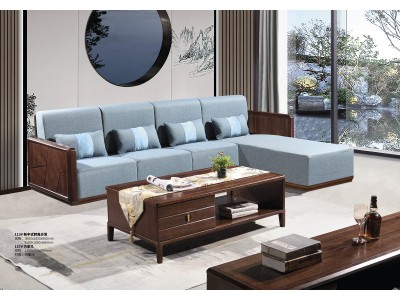 華軒新中式烏金木轉角沙發113#、方茶幾137#