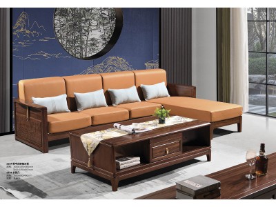 華軒新中式烏金木轉角沙發315#、長茶幾233#