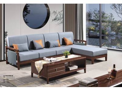 華軒新中式烏金木轉角沙發316#、長茶幾139#