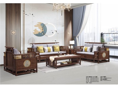 華軒新中式烏金木1+2+3沙發323#、長茶幾336#、四方茶幾232#