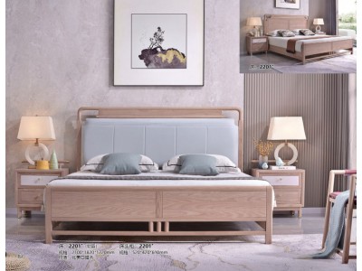 雅菲林新中式輕奢白蠟木床2201#(軟靠)、床頭柜2201#