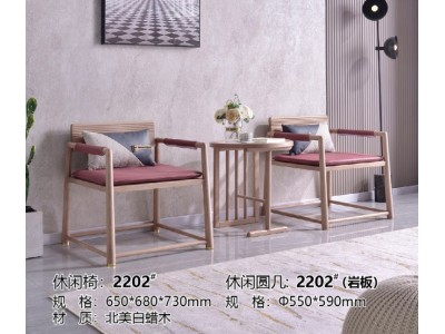 雅菲林新中式輕奢白蠟木休閑椅2202#、休閑圓幾2202#