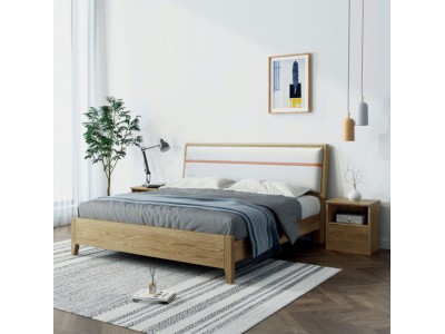 朗朝現代極簡白蠟木L2621#軟包床、L261#床頭柜