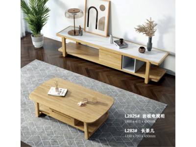 朗朝現代極簡白蠟木L2825#巖板電視柜、L283#長茶幾
