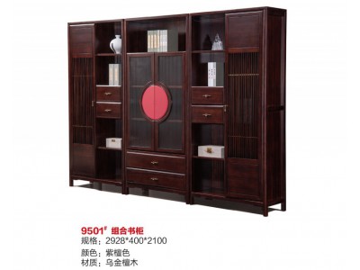 百福源康新中式烏金檀木組合書柜9501#