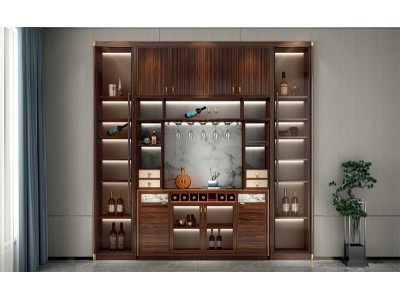昌龍禾運(yùn)新中式烏金木定制酒柜