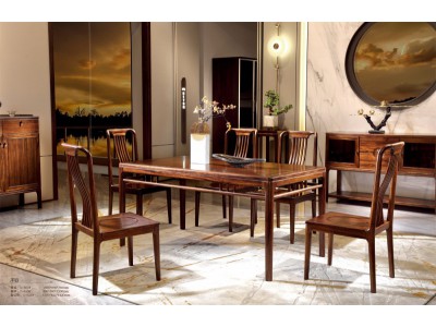 昌龍禾運(yùn)新中式烏金木餐桌1-507#、餐椅1-519#、餐邊柜1-521#