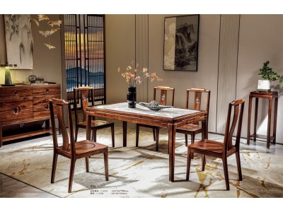 昌龍禾運(yùn)新中式烏金木巖板餐桌1-501#、餐椅1-518#