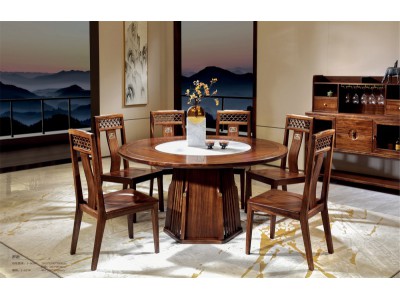 昌龍禾運新中式烏金木巖板圓桌1-509#、餐椅1-517#