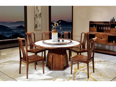 昌龍禾運新中式烏金木巖板圓桌1-505#、餐椅1-519#