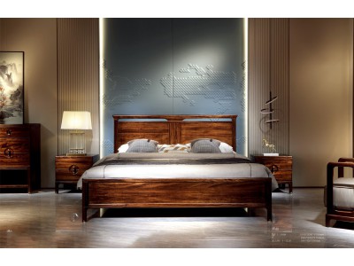 昌龍禾運新中式烏金木床1-106#、床頭柜1-112#