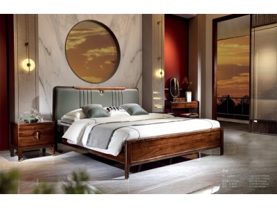 昌龍禾運新中式烏金木床1-102#、床頭柜1-112#、妝臺1-121#、妝凳1-131#