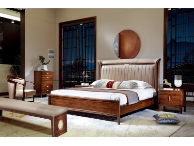 昌龍禾運新中式烏金木床1-1015#、床頭柜1-112#