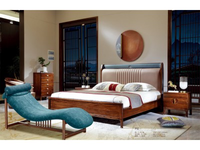 新中式床1-1013#、床頭柜1-112#、躺椅1-367#