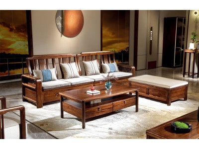 昌龍禾運新中式烏金木沙發1-205#、長茶幾1-225#
