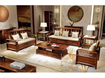 昌龍禾運新中式烏金木沙發1-205#、長茶幾1-221#、角幾1-226(巖板)#