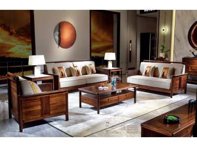 昌龍禾運新中式烏金木沙發1-202#、長茶幾1-225#、角幾1-226(巖板)#