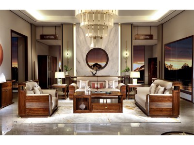 昌龍禾運新中式烏金木沙發1-208#、長茶幾1-222#、角幾1-226(巖板)#