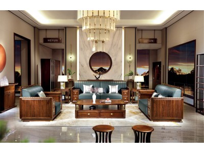 昌龍禾運新中式烏金木沙發1-209#、長茶幾1-229#、角幾1-226(實木)#