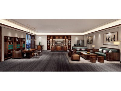 昌龍禾運(yùn)新中式烏金木定制總裁辦公室#