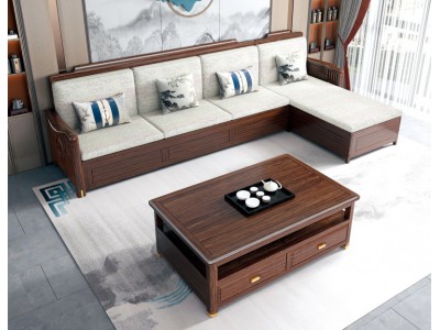 衛(wèi)府里新中式烏金木SF616轉(zhuǎn)角沙發(fā)、KT605茶幾