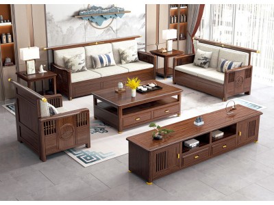衛府里新中式烏金木SF615沙發、KG603電視柜、KT605茶幾、KT606方幾