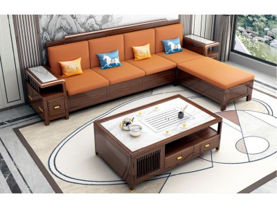 衛府里新中式烏金木SF609轉角沙發、KT608茶幾