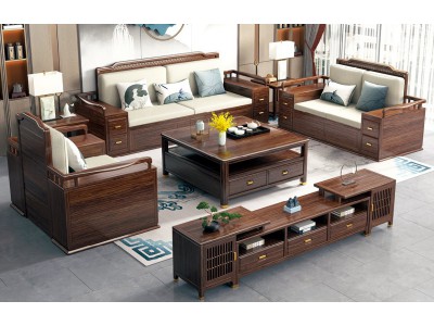 衛府里新中式烏金木?SF618沙發、KT609大方幾、KT606方幾、KG608伸縮地柜中柜、KG608伸縮地柜左右柜